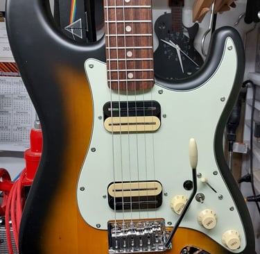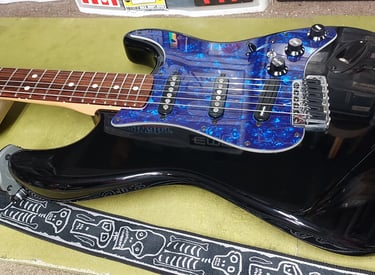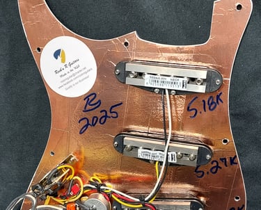 Professional installation of loaded pickguards to enhance your guitar's tone and aesthetics.